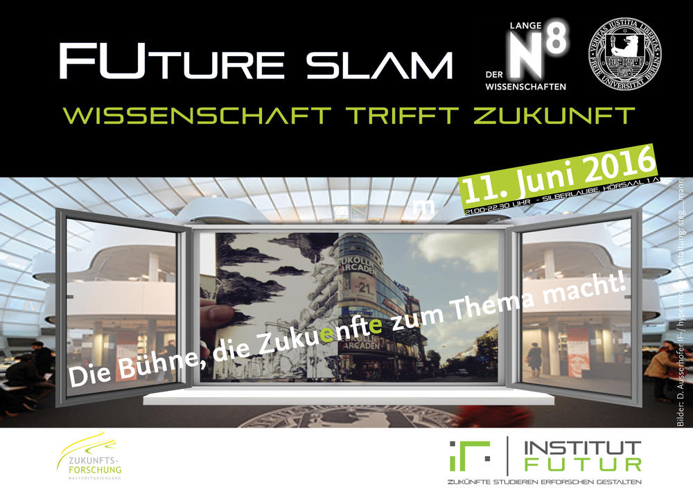 Wer macht mit beim FUture Slam im Rahmen der Langen N8 der Wissenschaften am 11. Juni 2016? Wir freuen uns auf Beiträge aus der eigenen Forschung und Praxis, die vielfältig und fachbereichsübergreifend (!) anregen, über mögliche, plausible und wünschenswerte Zukünfte nachzudenken!